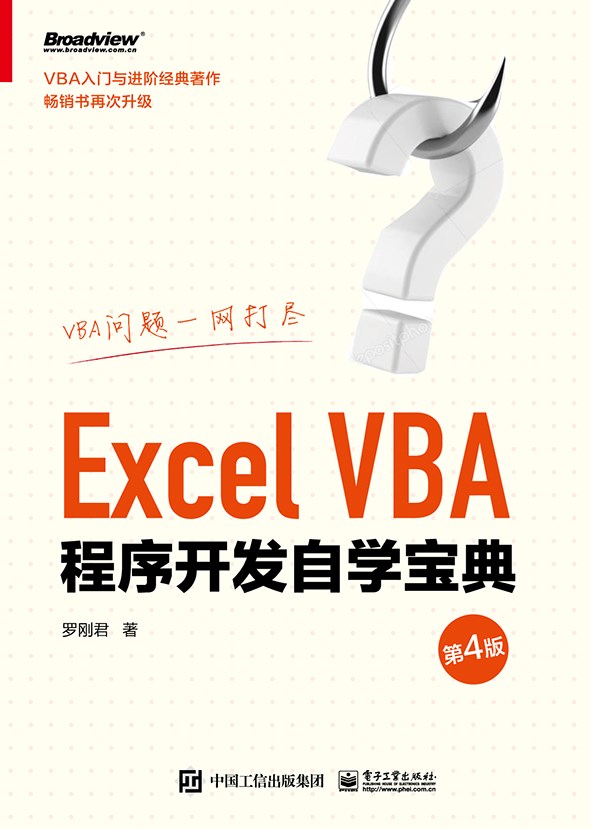 《Excel VBA 程序开发自学宝典(第 4 版)》是 VBA 入门与提高的经典教材。全书包含基础知识部分和高级应用部分。其中,基础知识部分包含 VBA 的基础理论、常用语句解析、综合应用、编程规则与代码优化等,提供了详尽的理论阐述和案例演示。高级应用部分包含数组、正则表达式、字典、设计窗体、VBA 与注册表、处理文件及文件夹、开发自定义函数、ribbon 功能区设计、与Word/PPT 协同办公,以及开发通用插件等专业知识。