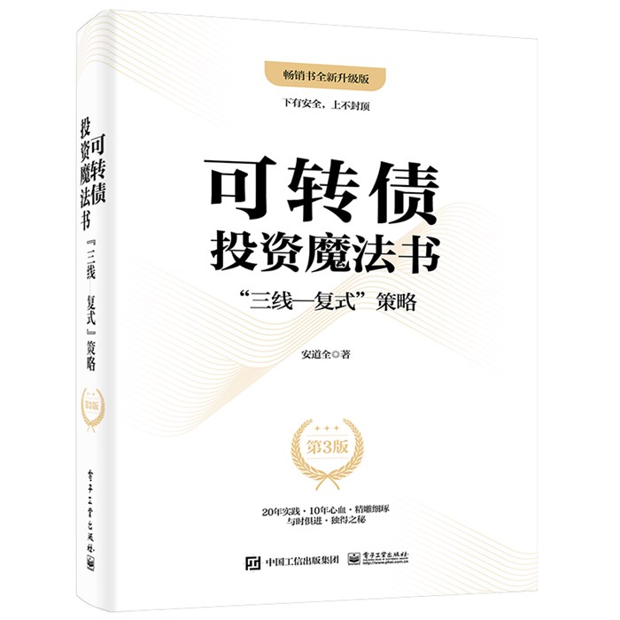《可转债投资魔法书:”三线—复式”策略(第3版)》独创的“三线—复式”策略,据此解决了可转债买什么、买多少、怎么买和怎么卖的问题;同时,“3+3个分散”给出了6种不同类型的实践,其中“极简参数分散”更进一步实现了零研究、零基础的自动量化投资,非常值得广大投资者学习和阅读。