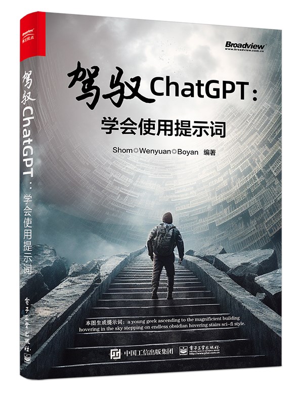 《驾驭ChatGPT:学会使用提示词》主要介绍了ChatGPT和AI作画提示词的写作技术,不仅包括如何利用角色扮演、具体翔实和举例提示等原则写出高效、有趣的提示词,以及如何将提示词应用于提升效率、创意思考和加速学习,还包括思维链技术、工具调用、程序调用、使用LangChain库构建应用等进阶内容。
