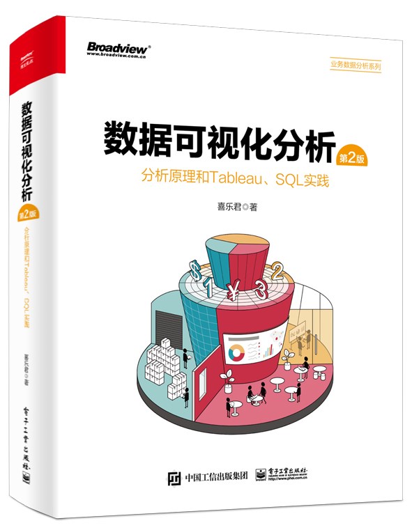 《数据可视化分析(第2版):分析原理和Tableau、SQL实践(全彩)》以Tableau Desktop的应用为中心,借工具讲解原理,以原理深化工具应用,并由点及面地介绍了业务分析的思考和原理,特别是提出了实践性的“业务—数据—分析”层次框架,并以三类“详细级别”的概念贯通数据模型、高级筛选和高级计算三大主题。
