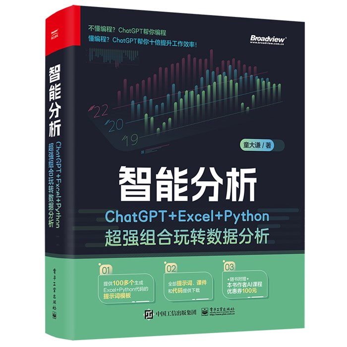 本书基于ChatGPT 3.5,并结合pandas、xlwings和OpenPyXL进行编写,实际上,将Excel数据分析的主要内容重做了一遍。