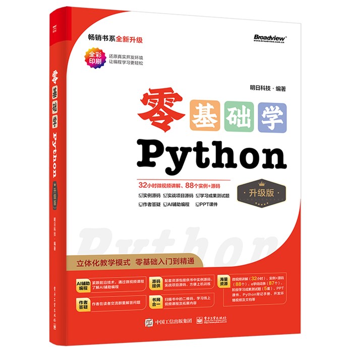 2024全新升级Python编程入门经典,销量超21万册,基于Python 3.12升级,附赠32小时188集视频、88个实例源码、AI 辅助编程视频、PPT课件、作者答疑、阶段学习成果测试题等资源