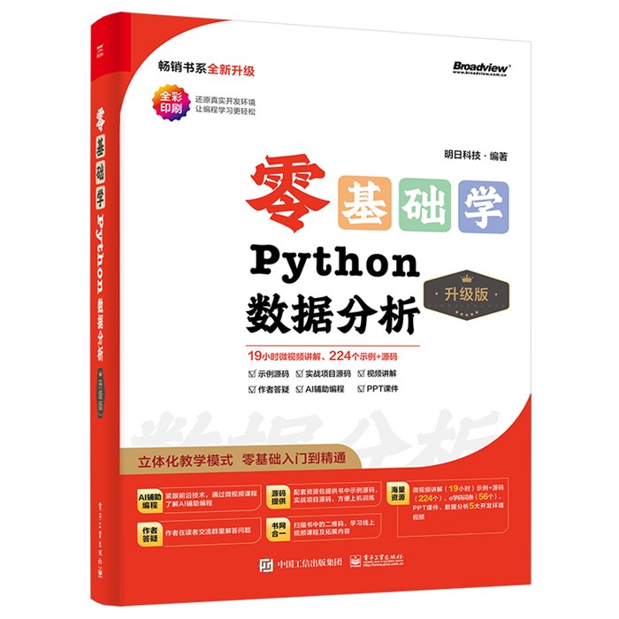 《零基础学 Python 数据分析》(升级版)以数据分析“三剑客”Pandas、Matplotlib 和 NumPy 为主线,从学习与应用的角度出发,全面介绍了数据分析必备入门知识,帮助读者快速掌握数据分析技能,拓宽职场道路。本书通过大量的示意图辅助讲解,力求使读者能够快速理解晦涩难懂的专业术语,同时通过快速示例将知识与应用相结合,并给出实际项目的数据分析案例,让读者能够轻松学习,从而将数据分析与预测知识应用到实际工作中。