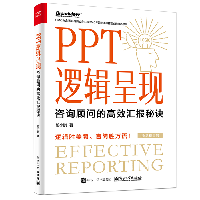 本书的写作初衷,正是希望构建一套符合中国人认知规律的 PPT 逻辑呈现体系,借助逻辑的力量,让 PPT 汇报更加高效、更具说服力。目前市场上关于 PPT 逻辑思维的图书寥寥无几。笔者带着“让职场人士写出有逻辑的 PPT”的使命,结合自己近 10 年的外资咨询公司经验以及 1000 多份 PPT 实战经验,力求帮助职场人士全面提升 PPT 逻辑呈现能力。