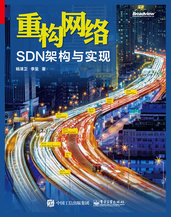 本书的1、4、6、8章由杨泽卫完成,2、3、5、7章和2个技术故事由李呈完成。本书内容是我们学习SDN过程中的总结,其目标读者是SDN初学者和进阶学习者。我们相信:一本技术书籍的生命力更加体现在后期读者的反馈上,它不仅仅是手边的纸质手册,更像是一个互动交流的学习平台,一个可以让作者和读者一起探讨SDN的平台。此外,由于作者水平有限,在书籍内容的编写上难免会有疏漏,观点难免有失偏颇,也恳请读者批评指正。