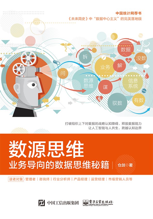 仓剑,米饭科技创始人,前新浪微博数据中心资深数据分析师,新浪学堂培训师,数据驱动课题组组长。前赛迪顾问软件产业研究总监、总经理。在近20年的职业生涯中,先后从事软件售前、战略咨询顾问、行业分析师、数据分析师等工作,最后自己创业,这是一条从业务走向数据再回到业务的职业道路,仓剑将其结成一份工作总结,形成此书。