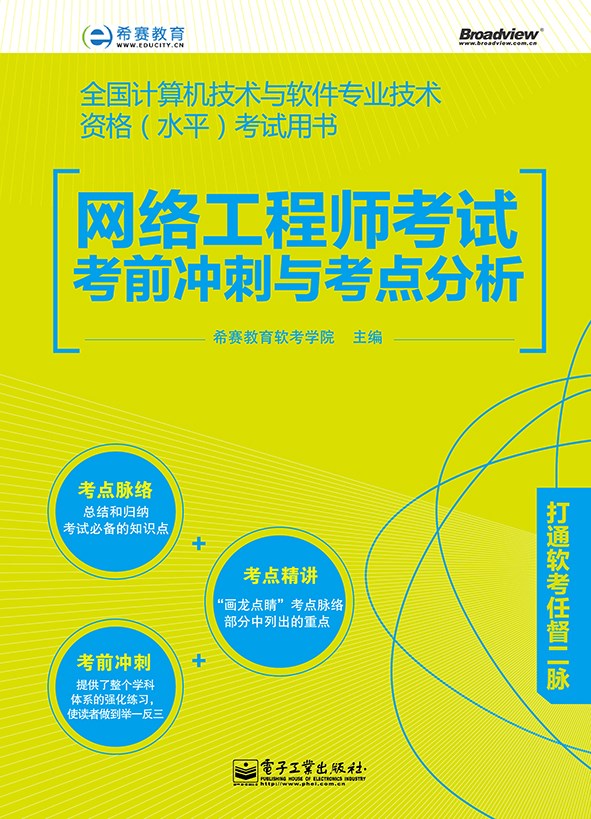 本书由希赛教育软考学院组编,作为计算机技术与软件专业技术资格(水平)考试中的网络工程师级别的考试辅导指定教材。在参考和分析历年试题的基础上,根据最新的考试大纲进行内容的组织。全书每个章节按照考点脉络、考点精讲、一点一练、考前冲刺、习题答案的体系进行讲解。
